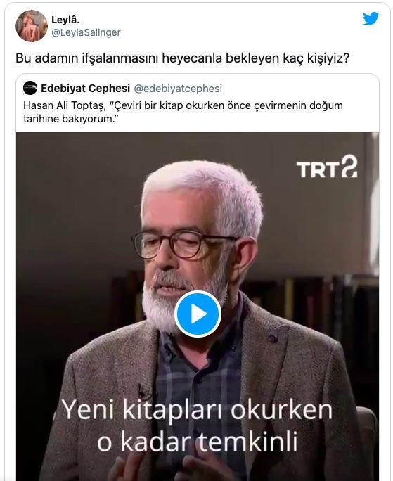 Sosyal medyada pek çok kadın, yazar Hasan Ali Toptaş’ın kendilerini taciz ettiğini ve cinsel saldırıda bulunduğunu paylaştı. Toptaş ile başlayan ifşa metinlerinde kadınlar, “#MeToo“, “#uykularınkaçsın“ etiketleriyle birbirlerine destek oldu. Leyla Salinger isimli bir Twitter kullanıcısı, Toptaş’ın videosunu paylaşarak, “Bu adamın ifşalanmasını heyecanla bekleyen kaç kişiyiz? Ben ve pek çok arkadaşımın kendisi ile nahoş anıları var üniversite yıllarına ait. Şu anki bilinç ve cesarete sahip olsam kesinlikle ifşa ederdim. Klasik orta yaş üzeri cins erkek edebiyatçı” dedi.