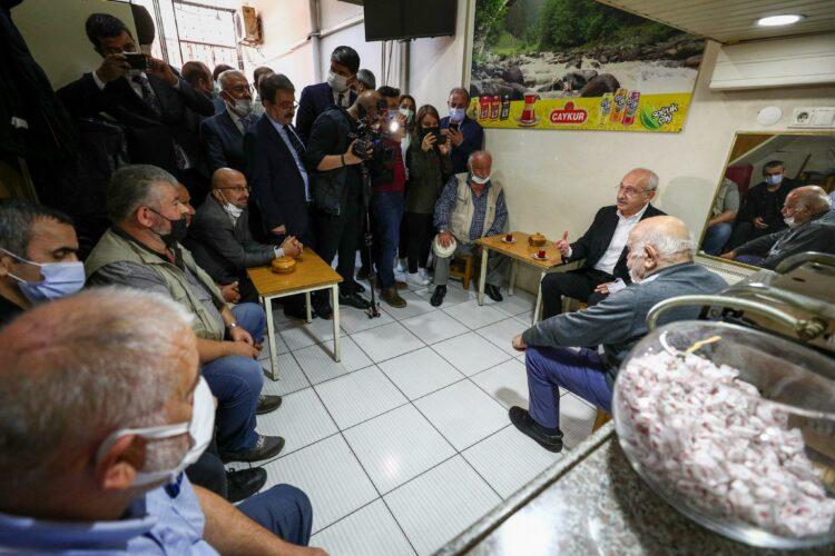 Cumhuriyet Halk Partisi (CHP) lideri Kemal Kılıçdaroğlu, AKP Genel Başkanı ve Cumhurbaşkanı Recep Tayyip Erdoğan’ın memleketi Rize’yi ziyaret etti. Çay üreticileri ile kahvaltıda buluşan Kılıçdaroğlu, ardından Rize Atatürk Caddesi’ndeki esnafla konuştu. Kılıçdaroğlu öğleden sonra kanaat önderleri, muhtarlar ve sivil toplum kuruluşlarının (STK) temsilcileri ile bir araya geldi.