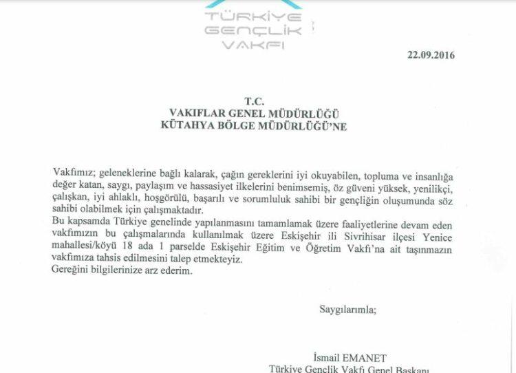 Medyascope olarak ulaştığımız Türkiye Gençlik Vakfı (TÜGVA) ile ilgili sızdırılan belgelere göre vakıf, 22 Eylül 2016 tarihinde 20 ilde 33 taşınmazın vakfa tahsisini istedi.
