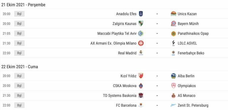 EuroLeague’de beşinci hafta, 21 Ekim Perşembe ve 22 Ekim Cuma günü oynanacak: