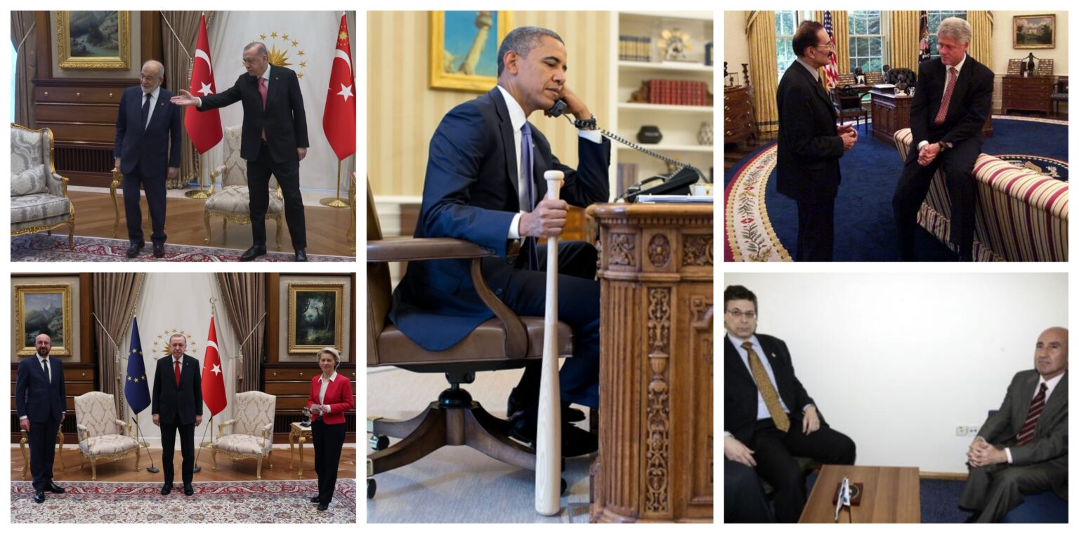 Erdoğan ekim ayında Milliyetçi Hareket Partisi (MHP) Genel Başkanı Devlet Bahçeli ile görüşürken Bahçeli’yi yanındaki tekli koltukta ağırlamıştı. İstanbul Büyükşehir Belediye (İBB) Başkanı Ekrem İmamoğlu da adaylığı açıklandıktan sonra Cumhurbaşkanı Erdoğan’dan randevu talep ederken Erdoğan İmamoğlu’nu da yanındaki tekli koltukta misafir etmişti.