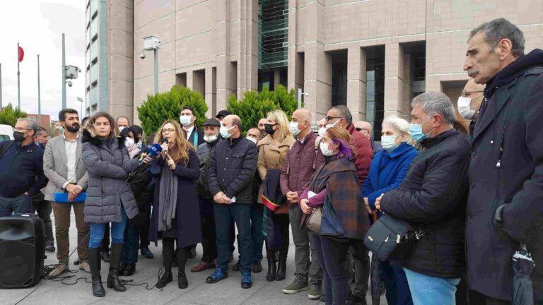 Cumartesi Anneleri’nin Galatasaray Meydanı’nda 25 Ağustos 2018’deki 700. hafta buluşmasında gözaltına alınan 46 kayıp yakını, hak savunucusu ve destekçiye, “kanuna aykırı toplantı ve yürüyüşlere silahsız katılarak ihtara rağmen kendiliğinden dağılmama” suçlamasıyla açılan dava, İstanbul-Çağlayan’daki İstanbul Adliyesi 21. Asliye Ceza Mahkemesi’nde devam etti. Davanın bugün (24 Kasım) yapılan üçüncü duruşması öncesi adliye önünde açıklamada bulunuldu. Duruşmayı … Cumartesi Anneleri/İnsanları davasında hakim tüm talepleri reddetti, avukatlar hakimi reddedip salonu terketti -Bir sonraki duruşma 23 Mart’ta okumayı sürdür