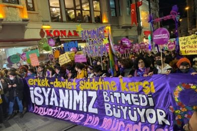 25 Kasım Kadına Yönelik Şiddete Karşı Uluslararası Mücadele Günü’nde kadınlar ve LGBTİ+’lar her yıl olduğu gibi bu yıl da Taksim Tünel Meydanı’nda buluştu. Tünel Meydanı’nda 19:30’da buluşan kadınlar ve LGBTİ+’lar, İstiklal Caddesi’ne yürümek istedi. İlk barikatı kaldıran polis, ikinci barikatı kaldırmadı, kadınlara ve LGBTİ+’lara biber gazı ile iki kez müdahale etti. Kadınlar tüm müdahalelere rağmen … İstanbul-Taksim’deki 25 Kasım Kadına Yönelik Şiddete Karşı Uluslararası Mücadele Günü eylemine polis müdahale etti, kadınlar eylemlerine devam etti: “Hükümet istifa” okumayı sürdür