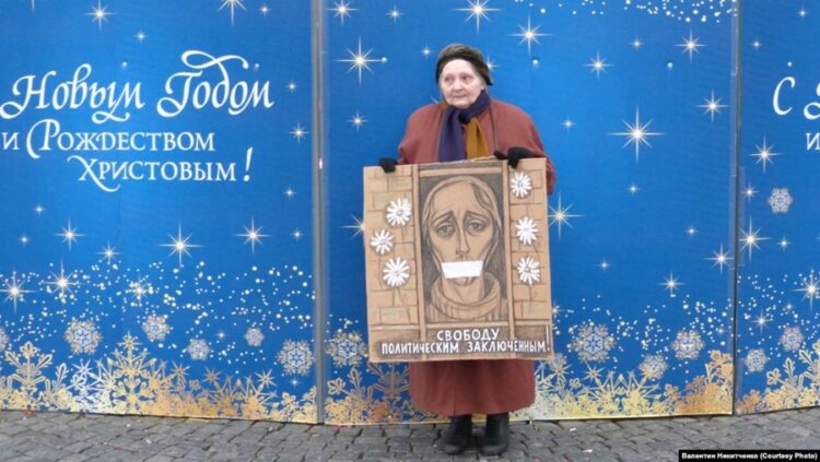 İkinci Dünya Savaşı sırasında Nazi ordusunun Leningrad Kuşatması’ndan sağ kurtulan 77 yaşındaki Yelena Osipova, savaş karşıtı eylemde Rus güvenlik güçleri tarafından gözaltına alındı.