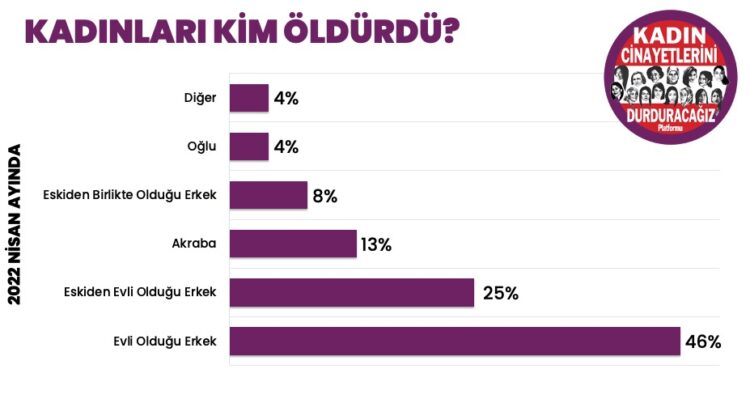 Kadın Cinayetlerini Durduracağız Platformu (KCDP), Nisan 2022 ayına ilişkin erkek şiddeti verilerini açıkladı. Rapora göre nisan ayında 24 kadın erkekler tarafından öldürüldü, 16 kadın ise şüpheli şekilde yaşamını yitirdi.
