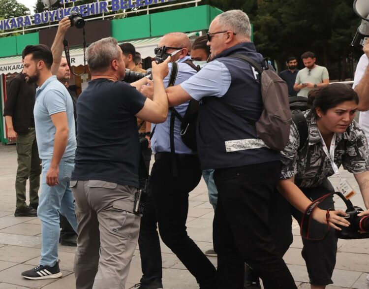 Gezi Parkı eylemlerinde polis Ahmet Şahbaz’ın silahından çıkan kurşunla ölen Ethem Sarısülük’ün iki gün önce Ankara’da yapılan anmasında polis, çok sayıda gazeteciyi engelledi. Bir polis, deneyimli foto muhabiri Adem Altan’ı fotoğraf çekerken iterek yere düşürdü. Yaşananları Medyascope’a anlatan Altan, “Son birkaç yıldır polis, eylemlerde bize görev yaptırmıyor. Bu tür sahneler çok sık yaşanıyor. Fotoğraf çektirmemek için her şeyi yapıyorlar” dedi.