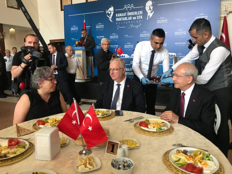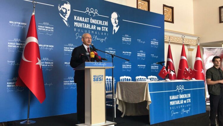 CHP Genel Başkanı Kemal Kılıçdaroğlu, kanaat önderleri, muhtarlar ve sivil toplum kuruluşları buluşmaları kapsamında Sincan ve Etimesgut ilçe örgütleriyle bir araya geldi. Kılıçdaroğlu konuşmasında, “Elinizi vicdanınıza koyun, oyunuzu öyle verin” dedi. CHP lideri, İstanbul İl Başkanı Canan Kaftancıoğlu hakkında verilen “adil olmayan” kararı tanımadıklarını ve Kaftancıoğlu’nun görevi başında olduğunu söyledi.