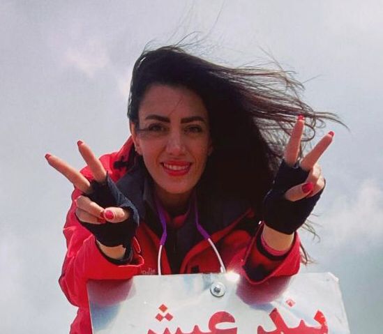“O zamanlar dağcılıkla uğraşıyordum. Kadınların zorunlu örtünmeye itirazının sembolü olan beyaz başörtüsünü İran’ın en yüksek dağı Demavend’e çıkardım. Kadınların pek çok şiddet ve ayrımcılığa uğradığı gerçeğini dağın zirvesinde duyurmak istedim.”