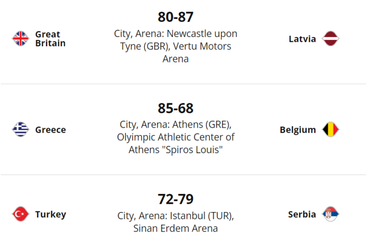 Sırbistan’da ise Nikola Jokic 24 sayı ve 10 ribaund, Marko Guduric ve Nikola Kalinic 14’er sayı, Vladimir Lucic de 11 sayı kaydetti.