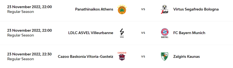 EuroLeague’de dün akşam (22 Kasım) oynanan karşılaşmalarda alınan toplu sonuçlar: