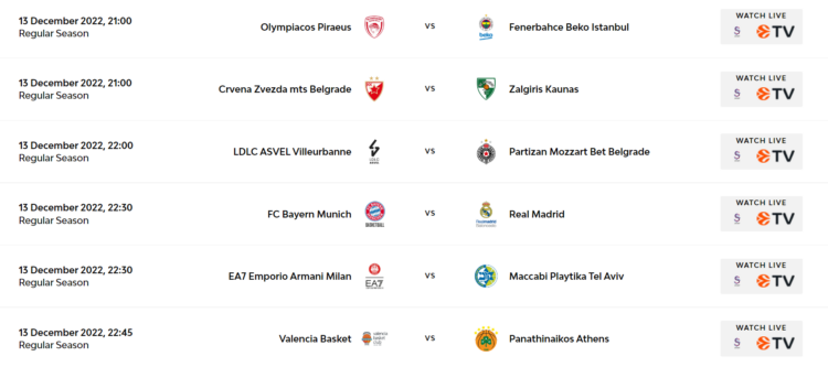 Turkish Airlines EuroLeague’de bugün oynanacak karşılaşmaların programı: