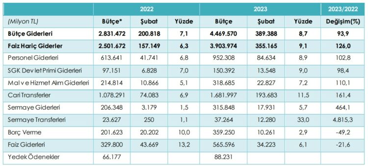 2023’ün ilk iki ayı için bütçe açığı, önceki yılın aynı dönemine göre yüzde 303 artışla, 202,8 milyar TL olarak açıklandı. Ocak ayında bütçe gelirleri, Ocak 2022’ye göre yüzde 64 artış gösterirken, ocak-şubat dönemi için yıllık artış yüzde 14 ile sınırlı kaldı.