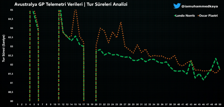 Kırmızı bayraklar, yeniden başlamalar ve ceza ile kaza sonrasında puan alamayanlar da işin içine girince hem Piastri hem de Norris puan almayı başardı. 12 puanı cebine koyan McLaren, bir şekilde takımlar şampiyonasında beşinci sıraya yükselmeyi başardı. Bireysel performanslarına baktığımızda da net olarak Lando Norris, Oscar Piastri’den daha iyi bir iş çıkardı. Norris, takım arkadaşından yarış temposu açısından 0,44 saniye daha iyiydi. McLaren’in bu gelişimi bir şeyleri tetikler mi göreceğiz ancak geçen seneyi aradıkları kesin.