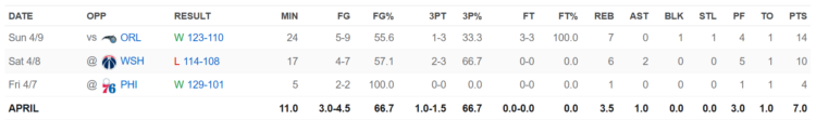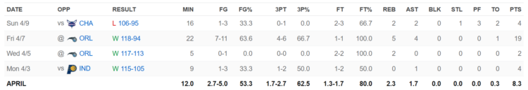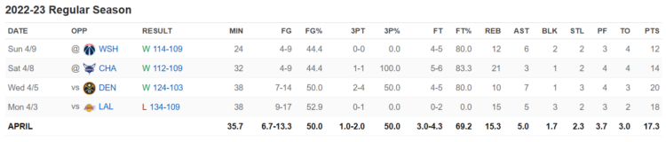 Alperen’in nisan ayında çıktığı 4 karşılaşmadaki istatistikleri: