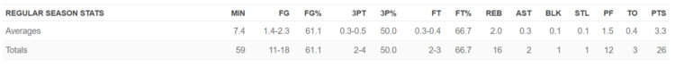 Bu sezon sadece 59 dakika süre alan Ömer Faruk’un istatistikleri: