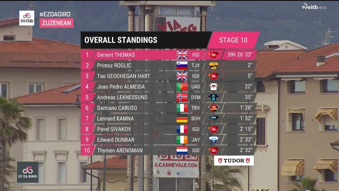 10. etabın ardından genel klasman ilk 10: