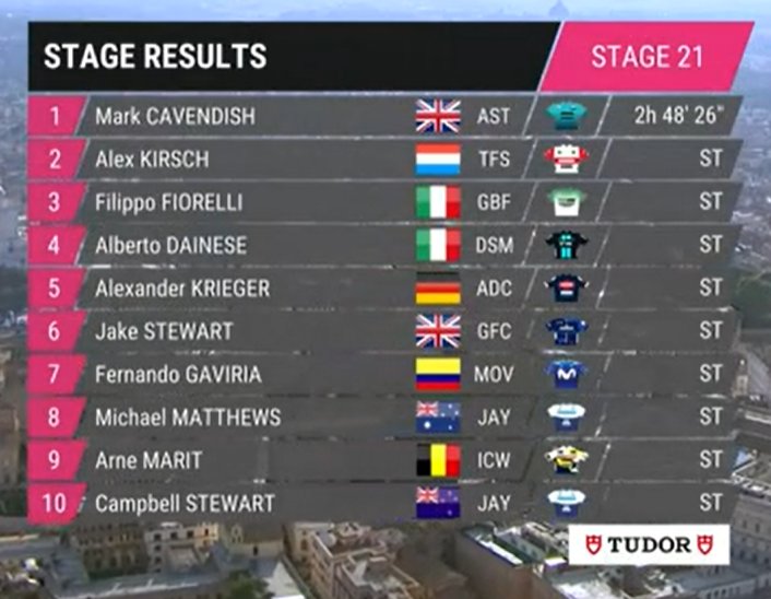 📊🏆54th stage-win for 🇬🇧Cavendish in a Grand Tour, his 17th in the 🇮🇹Giro d'Italia.