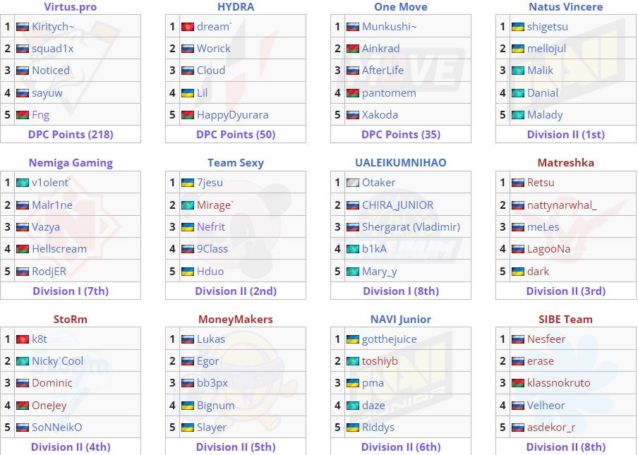 Doğru Avrupa’da ise işler önceki senelere göre daha karışık. Virtus Pro ve NaVi(Natus Vincere) eski günlerinden çok uzaklar. Yapılanmaya giden iki takım bu sene beklentilerin çok altında kaldı. 9Pandas, Team Spirit ve BetBoom Team’in DPC sıralamasında ilk 12’de yer alması sebebiyle bu sene Doğu Avrupa’dan 4 takım izleyeceğiz. Tabii ki en güçlü 3 takım elemeler denkleminde yer almadığından daha çekişmeli bir TI bileti kapışması izleyeceğiz. Bu bilete en yakın takım şu an için Virtus Pro gözüküyor. Tecrübeli kaptan fng’nin sürüklediği takım her ne kadar favori gibi gözükse de istikrarlı olduklarını söyleyemeyeceğim. Carry pozisyonundaki Kiritych ve Mid pozisyonundaki squad1x’in tam anlamıyla potansiyelini gösterdiklerini düşünmüyorum. Bu yüzden bölgenin sürprizlere açık olduğuna inanıyorum. HYDRA, One Move, NaVi ve Nemiga Gaming de diğer güçlü adaylar. Özellikle Nemiga Gaming’in bileti alamasa bile elemelerde büyük kaos çıkarabileceğini düşünüyorum. Rodjer’ın gelişiyle birlikte takımın performansı ciddi biçimde yükseldi. Team Sexy ve StoRm’da bazı sürpriz sonuçlara imza atabilecek potansiyele sahip takımlar.