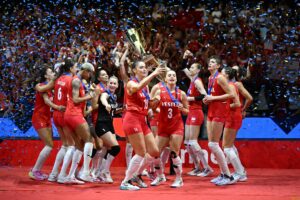 2023 CEV Kadınlar Avrupa Voleybol Şampiyonası final karşılaşmasında Sırbistan’ı setlerde 3-2 mağlup eden A Milli Kadın Voleybol Takımımız şampiyon oldu. Tarihinde ilk kez mutlu sona ulaşan Filenin Sultanları’nın şampiyonluk yolculuğunu sizin için derledik. Türkiye’nin kupaya uzanan yolculuğu Türkiye A Milli Kadın Voleybol Takımı, 2023 FIVB Voleybol Kadınlar Milletler Ligi final mücadelesinde Çin’i 25-22, 22-25, 25-19 … 2023 CEV Kadınlar Avrupa Voleybol Şampiyonası’nda şampiyon Türkiye: Filenin Sultanları’nın şampiyonluk yolculuğu okumayı sürdür