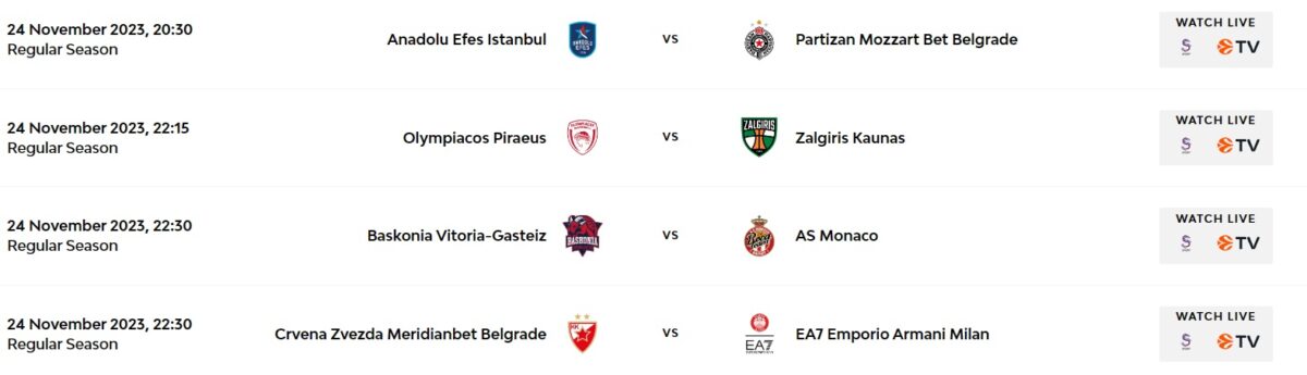 Turkish Airlines EuroLeague’de dün oynanan karşılaşmalarda alınan sonuçlar: