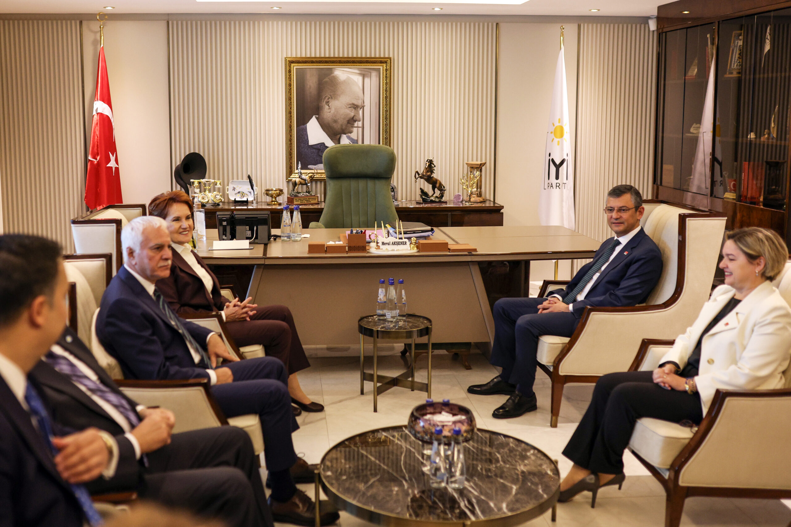 Cumhuriyet Halk Partisi (CHP) Genel Başkanı Özgür Özel, İYİ Parti Genel Başkanı Meral Akşener’den randevu talep etmişti. İki genel başkan bugün (30 Kasım) saat: 10.30’da İYİ Parti Genel Merkezi’nde bir araya geldi. İYİ Parti Genel Merkezi’ne giden Özgür Özel’i İYİ Parti Yerel Yönetimler Başkanı Burak Akburak ve Siyasi İşler Başkanı Oktay Vural karşıladı. Özel’e Grup Başkanvekili Gökhan Günaydın, Genel Sekreter Selin Sayek Böke, Yerel Yönetimlerden Sorumlu Genel Başkan Yardımcısı Gökan Zeybek, Hukuk ve Seçim İşlerinden Sorumlu Genel Başkan Yardımcısı Gül Çiftçi eşlik etti. Görüşmede Vural ve Yılmaz’la birlikte İYİ Parti Genel Sekreteri Ayfer Yılmaz ve Grup Başkanı Koray Aydın da bulundu.