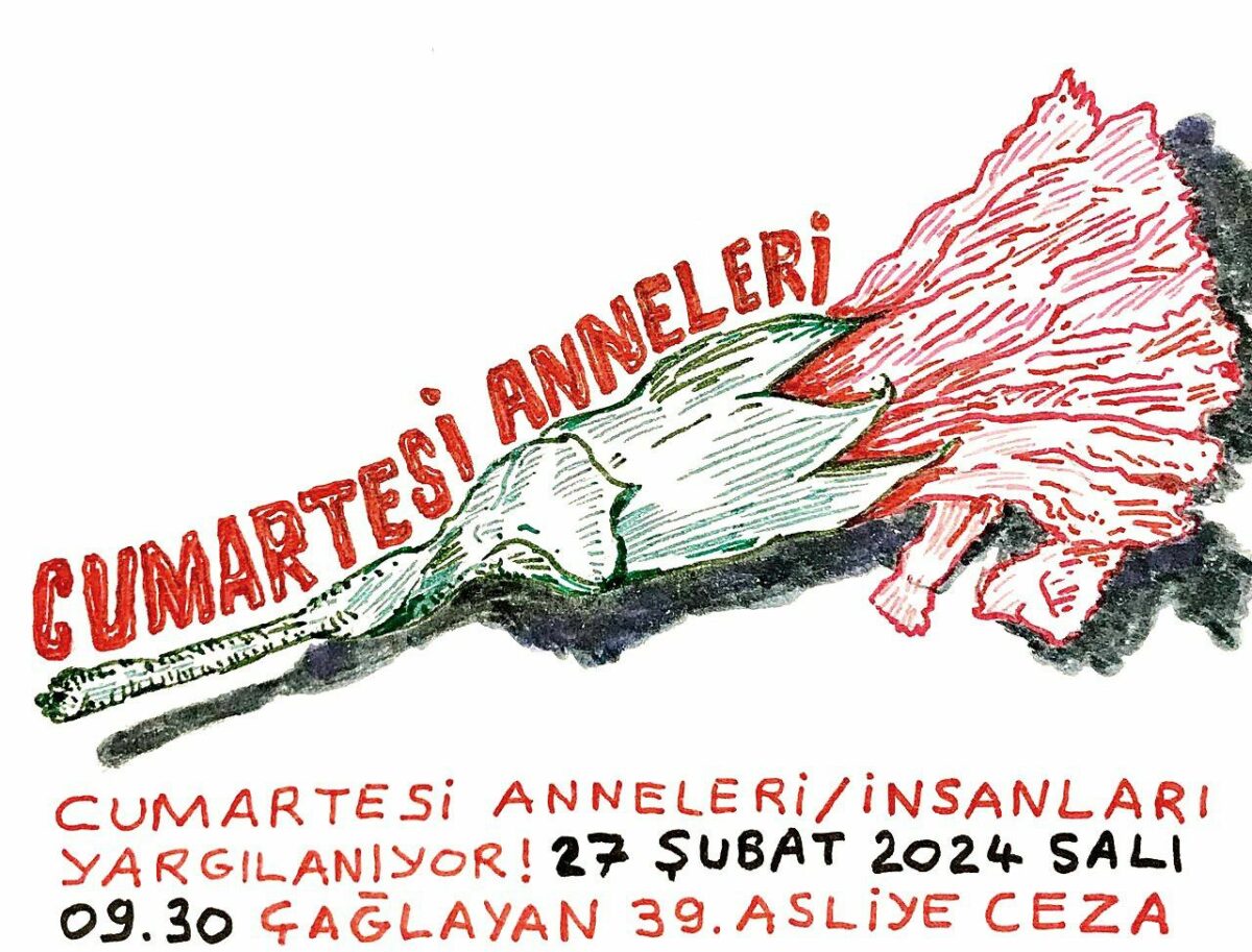 Gözaltında kaybedilen yakınlarının akıbetini sormak ve faillerin yargılanmasını talep etmek için İstanbul- Beyoğlu’nda Galatasaray Meydanı’nda 1995 yılından beri oturma eylemi yapan Cumartesi Anneleri/ İnsanları’na yeni bir dava açıldı. İlk duruşma 27 Şubat Pazartesi saat 09.30’da İstanbul Adalet Sarayı’nda görülecek.