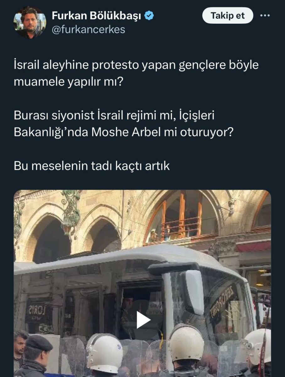 Bölükbaşı, bir paylaşımında İçişleri Bakanı Ali Yerlikaya’yı İsrail İçişleri Bakanı Moshe Arbel’e benzetti, ardından bu paylaşımını sildi.