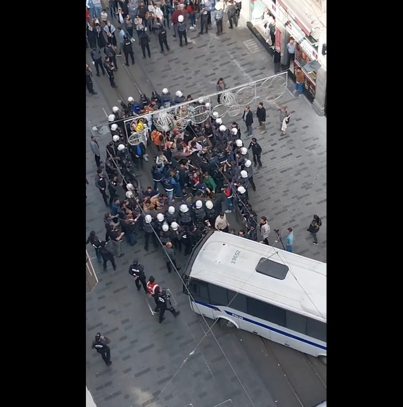 Gazeteci İsmail Arı, X hesabından paylaştığı videoda İstiklal Caddesi’nde polisin müdahalesini kuşbakışı görüntüledi.