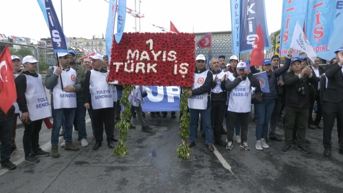 11.54: Türkiye İşçi Sendikaları Konfederasyonu (TÜRK-İŞ) ve bağlı sendikalar, Kazancı Yokuşu’na karanfil ve Taksim’e çelenk koydu. Türkiye Otel Lokanta Dinlenme Yerleri İşçileri Sendikası (TOLEYİS) Genel Başkanı Cemail Bakındı, “Siyasetçilerin söylemlerimize kulak vermesini ondan sonra çalışma hayatının önündeki, özellikle örgütlenmenin önündeki toplu sözleşme düzeninin önündeki engelleri kaldırmasını önemle rica ediyoruz. Kaldırır kaldırır, kaldırmayan kendi bilir. 2028’de hesaplaşırız” dedi.