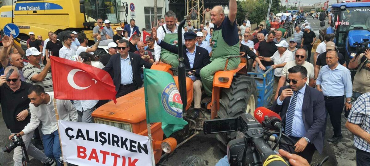CHP Genel Başkanı Özgür Özel, Tekirdağ-Hayrabolu’da hububat fiyatlarının düşük açıklanmasına tepki göstermek için ”Buğday Mitingi” düzenledi. Çiftçiler miting öncesi, hububat alım fiyatını traktörlü konvoyla protesto etti. Özel de çiftçilere destek olmak için konvoy katıldı ve traktör sürdü.