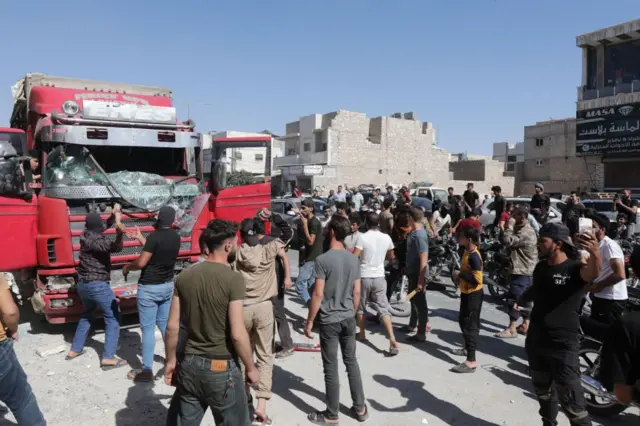Videos circulated on social media throughout the day Monday showing large mobs attacking Turkish military vehicles, burning Turkish flags, and attacking Turkey-controlled government buildings in the northern Syrian city of El Bab.