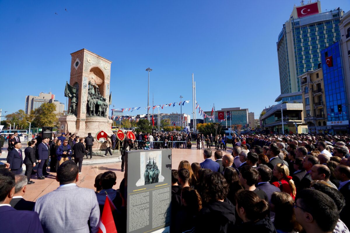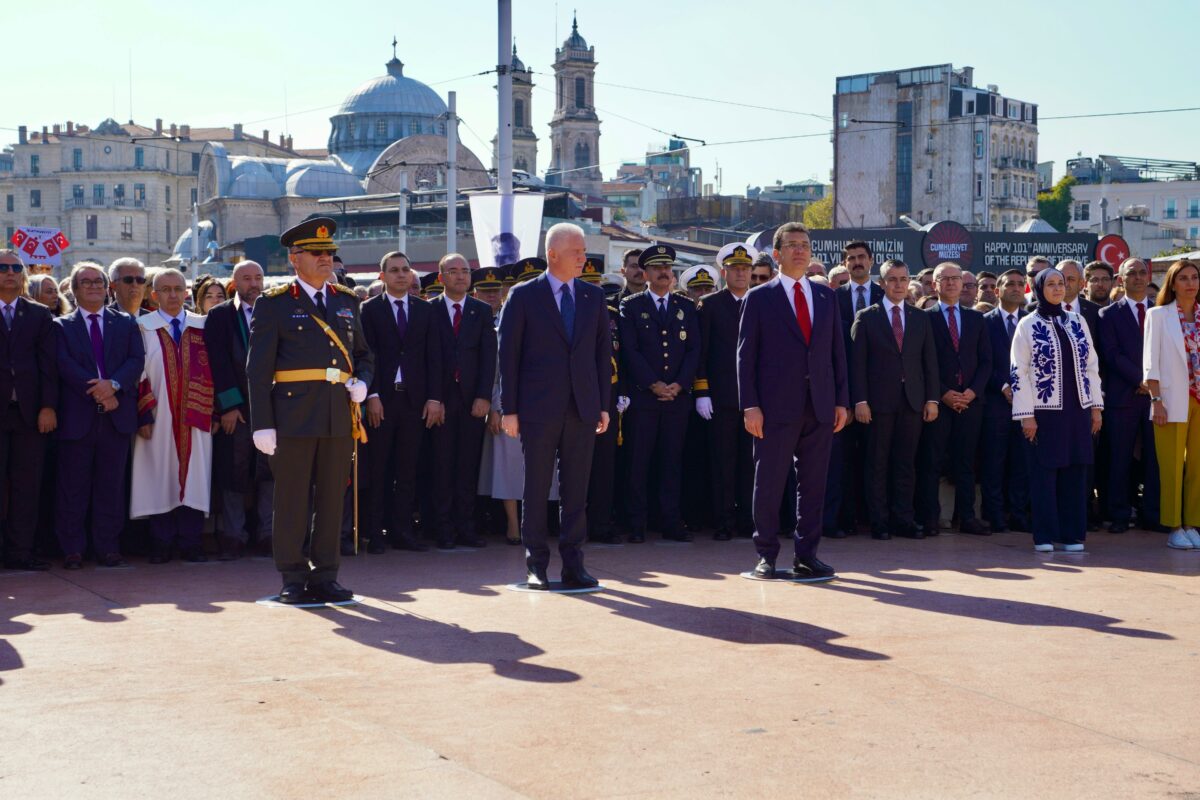 Türkiye Cumhuriyeti’nin 101. yılı, İstanbul’da Taksim Cumhuriyet Anıtı’nda düzenlenen törenle kutlandı. İstanbul Valisi Davut Gül, 1. Ordu ve İstanbul Garnizon Komutanı Orgeneral Metin Tokel ve İstanbul Büyükşehir Belediye Başkanı Ekrem İmamoğlu’nun yanı sıra CHP İstanbul İl Başkanı Özgür Çelik, CHP milletvekilleri Yüksel Mansur Kılınç, Nimet Özdemir ve Beyoğlu Belediye Başkanı İnan Güney de törene katıldı.