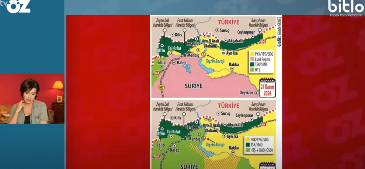 “Samiye Özlem Gürses isimli şahıs hakkında kendisine ait ‘TV OZ’ isimli YouTube kanalındaki bugün (20/12/2024) tarihli yayında cumhuriyetimizin milli ordusu Türk Silahlı Kuvvetlerimiz hakkında ‘Gördüğünüz üzere IŞİD yapısı, yani TSK-SMO yapısı Kürtlerin olduğu bölgelerde küçük küçük kazanımlar elde etmiş’ şeklinde sözler sarf ederek Türk Silahlı Kuvvetlerimize terör örgütü benzetmesi yaptığı, işkence ve katliamlarda bulunan terör örgütleriyle birlikte hareket eden ve işgalci olarak nitelendirdiği bir kurum olarak gösterdiği tespitiyle ‘Devletin kurum ve organlarını aşağılama’ ve ‘Halkı yanıltıcı bilgiyi alenen yayma’ suçlarından soruşturma Cumhuriyet Başsavcılığımız re’sen başlatılmış olup şüpheli yakalanarak gözaltına alınmıştır.”
