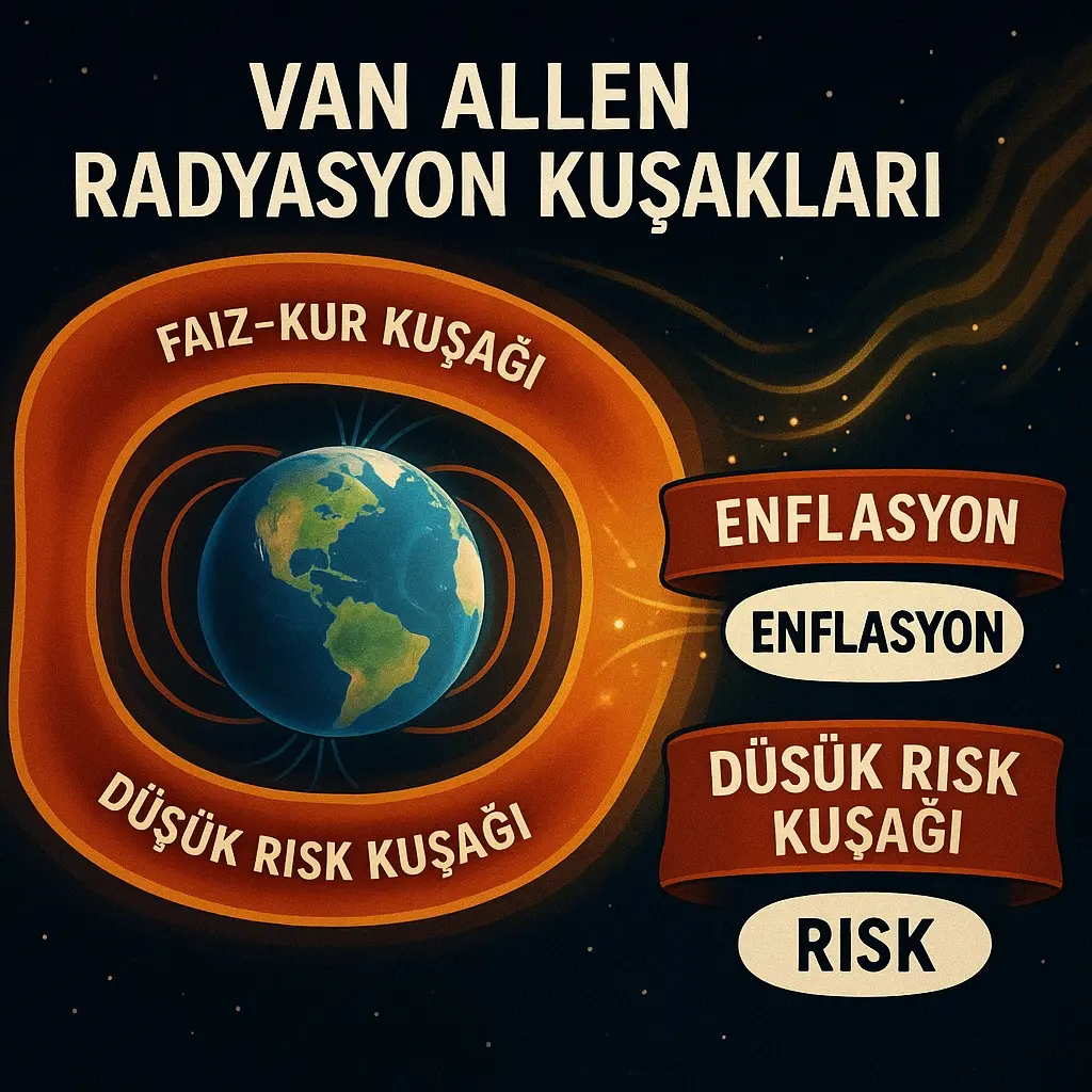 Günümüz ekonomilerinde Van Allen radyasyon kuşakları gibi kalkan görevi yapan iki kuşak var: faiz – kur kuşağı ve düşük risk kuşağı. Bu iki kuşak ekonomiyi yıkıcı finansal ataklardan korur. Bunların da tıpkı Van Allen radyasyon kuşakları gibi belirli bir dengesi vardır. Bu benzerliğe karşılık Van Allen radyasyon kuşaklarının dengesinin bozulması belirli bir zaman alırken, faiz – kur kuşağı ile düşük risk kuşağının bozulması kısa sürede gerçekleşebilir.