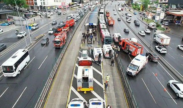 “10 Mayıs 2025 Cumartesi günü (bugün) saat 15:53’de Haramidere Sanayi Metrobüs durağında, bir metrobüs aracının durak içerisinde duramayarak önündeki metrobüs aracına çarpması sebebiyle kaza meydana gelmiştir. Yaralılara olay yerinde sağlık ekiplerince ilk müdahale gerçekleştirilmiş ve en yakın hastanelere sevkleri yapılmıştır. Kaza ile ilgili İstanbul Büyükşehir Belediyesi, İETT ve Emniyet Müdürlüğü yetkililerince idari ve teknik soruşturma başlatılmıştır.”