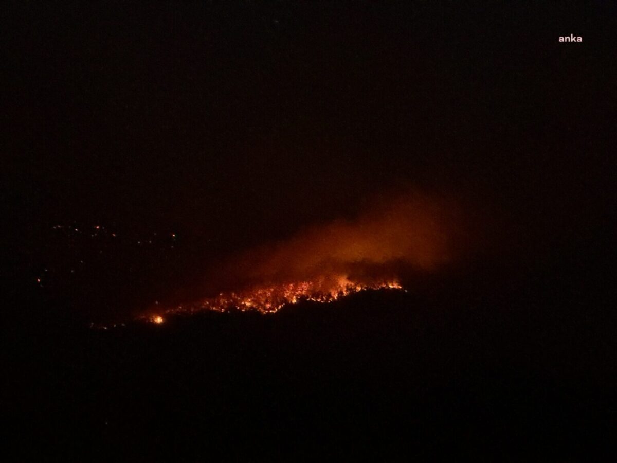 Yangınlara 116 söndürme ekibi, 10 iş makinası ve 385 personelle gece boyunca karadan müdahale ediliyor.