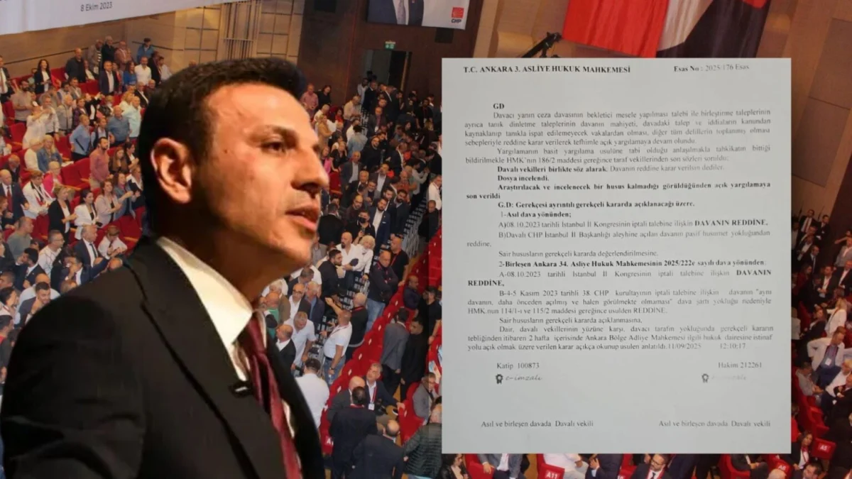 Ankara 3. Asliye Hukuk Mahkemesi, CHP’nin 8 Ekim 2023 tarihli İstanbul İl Kongresi’nin iptali talebini reddetti. Mahkeme aynı zamanda 4-5 Kasım 2023 tarihli 38. CHP Kurultayı’nın iptali davasını da “aynı davanın daha önceden açılmış olması” gerekçesiyle usulden reddetti.