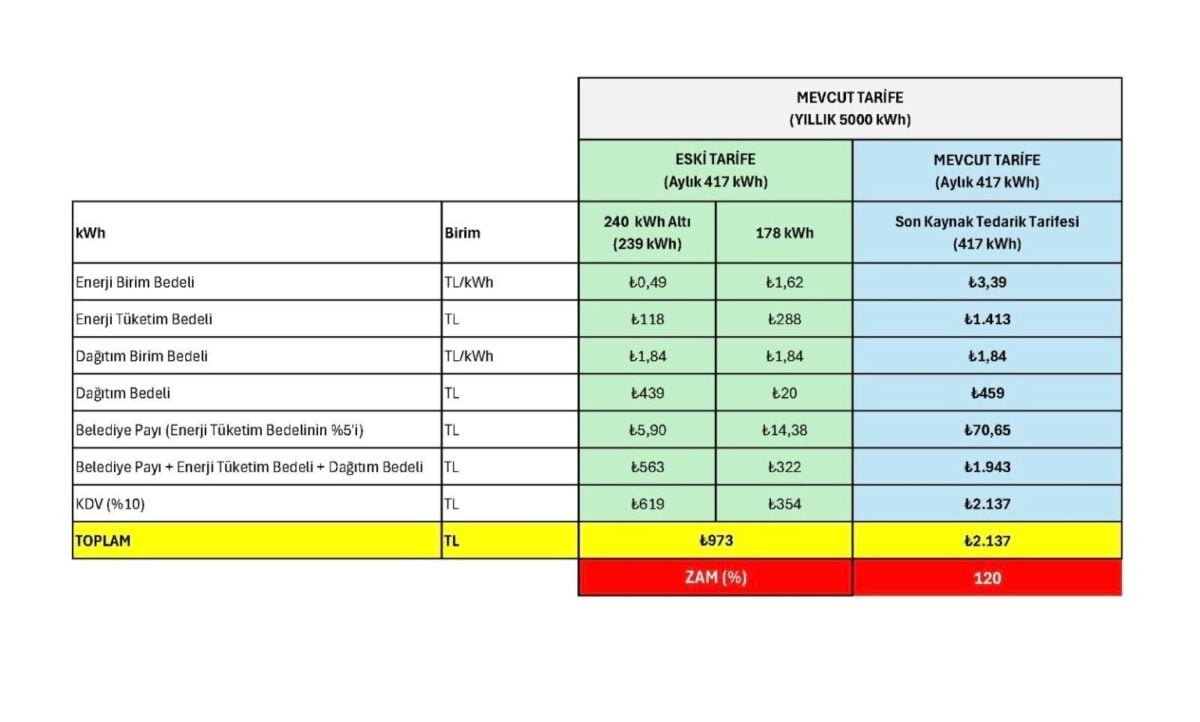 “EPDK’nın birkaç ay içinde almak üzere olduğu kararla, 2026 yılından itibaren geçerli olmak üzere; apartman, kooperatif ve siteler, 2025 yılı toplamında ortak kullanımda tükettikleri elektrik miktarı 3 bin kilovatsaati aşarsa, yani yıllık elektrik faturası toplamı 8 bin TL’yi geçerse, ortak elektrik sayaçları devasa bir zamla karşılaşacak.”