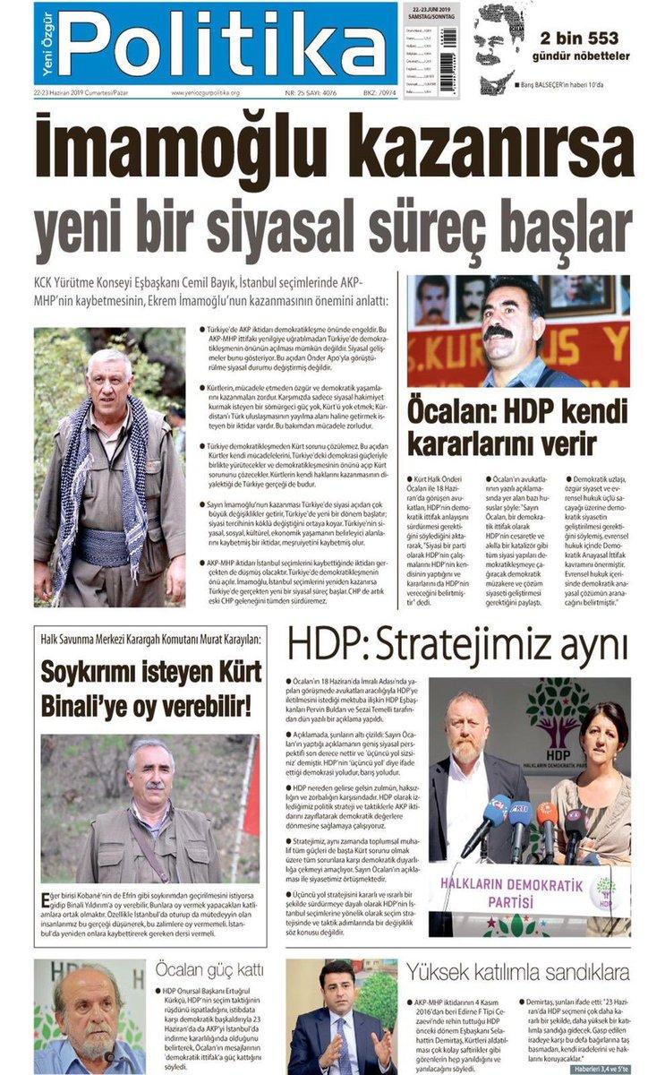 HDP yönetimi, “Sayın Öcalan’ın yaptığı açıklamanın geniş siyasal perspektifi son derece nettir ve ‘Üçüncü Yol sizsiniz’ demiştir.” tespitinin ardından, “İki tarihsel blok arasında taraf olmamaya ve Üçüncü Yol stratejisini kararlı ve ısrarlı bir şekilde sürdürmeye dayalı olarak HDP’nin İstanbul seçimlerine yönelik seçim stratejisinde ve taktik adımlarında bir değişiklik söz konusu değildir.” diyerek İmamoğlu’na desteğin süreceğini beyan etmiş oldu.