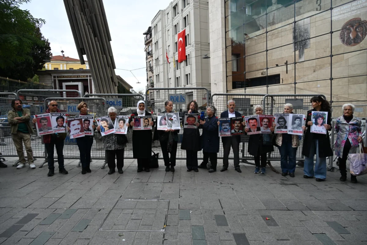 “1074.haftamızda, hakikat ve adalet arayışımızın kalbi olan Galatasaray Meydanı’ndan, bizi ayıran polis bariyerlerinin önündeyiz. Bu bariyerler, yalnızca bizi Galatasaray Meydanı’ndan ayırmakla kalmıyor; aynı zamanda toplanma özgürlüğümüze ve kayıplarımızı arama mücadelemize de engel oluşturuyor.