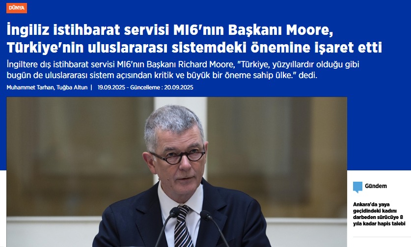 MI6’in başında olan Richard Moore bir dönem İngiltere’nin Ankara Büyükelçisi’ydi. Moore daha bir ay önce (19 Eylül 2025) İstanbul’da bir basın düzenlemiş, Türkiye’nin önemini anlatmıştı. Anadolu Ajansı bile toplantıyı haberleştirdi. Koyu bir Beşiktaş taraftarı da olduğunu belirten Moore, MI6 görevini ekim başında bıraktı.