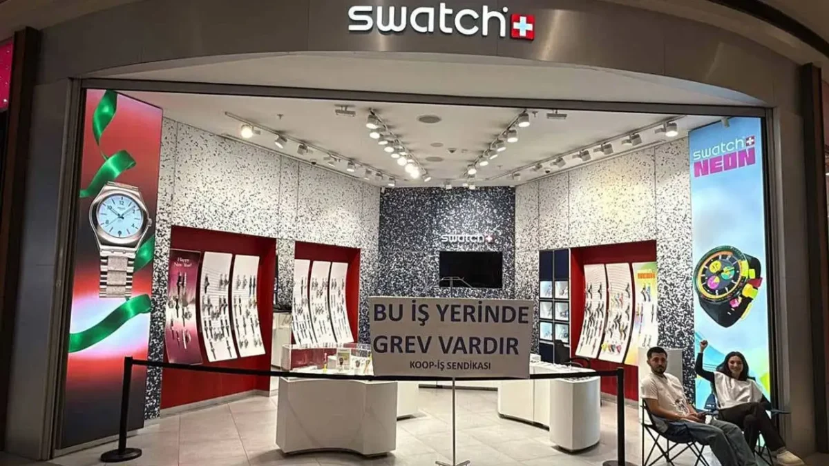 İsviçre merkezli saat markası Swatch Group’un Türkiye’deki mağazalarında çalışan işçiler, toplu iş sözleşmesi (TİS) görüşmelerinde ilerleme sağlanamaması üzerine 10 Kasım’da greve çıktı. Üç ildeki 16 mağazada Türk-İş’e bağlı Koop-İş Sendikası’nda örgütlü yaklaşık 100 işçi, düşük ücretler, uzun çalışma saatleri ve yetersiz sosyal haklara tepki gösteriyor.