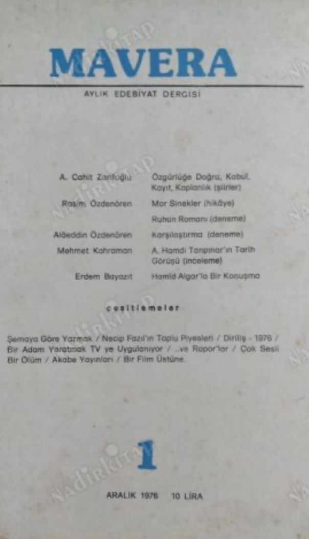Mavera Dergisi onlardan farklıydı. Rasim Özdenören, Cahit Zarifoğlu, Erdem Bayazıt, M. Akif İnan, Alaaddin Özdenören gibi isimler yazıyordu ve onlardan biri diğerlerinin önünde görünmüyordu. Özellikle Rasim Özdenören, Cahit Zarifoğlu, Erdem Bayazıt üçlüsü sanırım en ilgi gören isimlerdi ama Mavera Dergisi Rasim Özdenören ya da Cahit Zarifoğlu dergisi değildi.