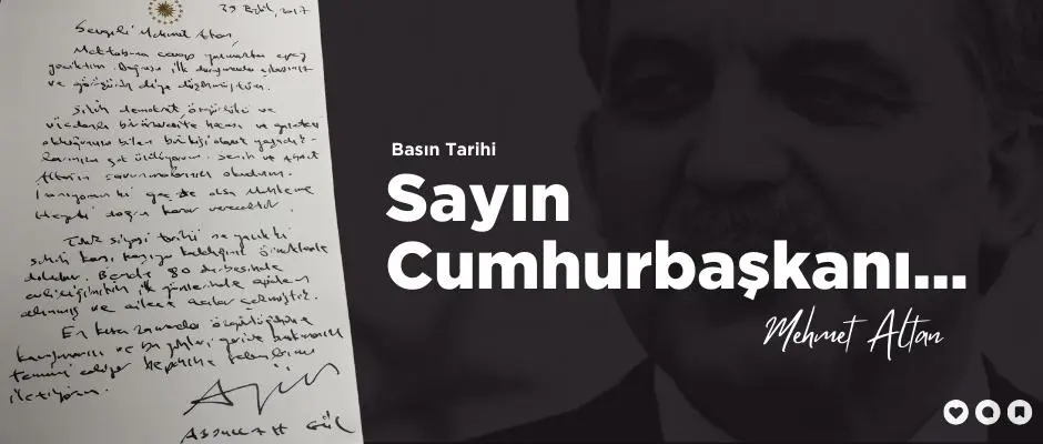 11. Cumhurbaşkanı Abdullah Gül’ün Cumhurbaşkanlığı antetli bir kâğıda kendi el yazısıyla yazdığı içten, sıcak, dostça bir mektup aldım.