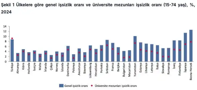 OECD (Ekonomik İşbirliği ve Kalkınma Örgütü) ülkelerinde yükseköğrenim, istihdam olasılığını güçlendiren bir unsurken, Türkiye’de durum bunun tam tersine işaret ediyor. Üniversite mezunu işsizliğinin genel işsizlik oranını aştığı Türkiye’de yükseköğrenim, iş gücü piyasasında diğer ülkelerdeki karşılığını bulamıyor.