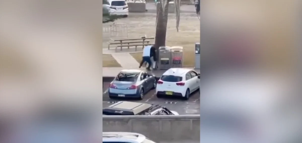 Park halindeki bir aracın arkasına çömelmiş olan görgü tanığı, ateş eden silahlı saldırgana doğru koşuyor. Saldırganın üzerine atlayarak silahı elinden alıyor.