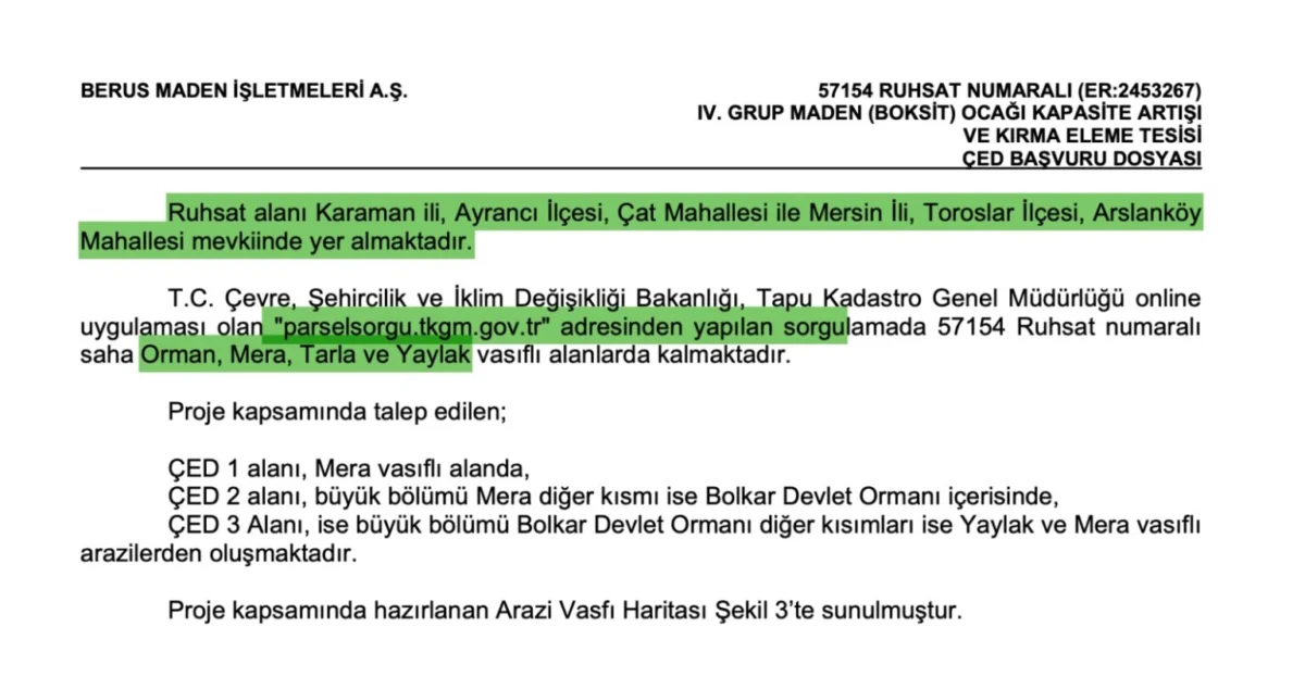 Kafa karışıklığına yol açanın ise şirketin başvuru dosyasında, ruhsat sahasının geçmişini anlattığı bölümde, daha önce yapılmış ve “ÇED gerekli değildir” kararı alınmış bir başvuruya yönelik atıf olduğu anlaşılıyor.