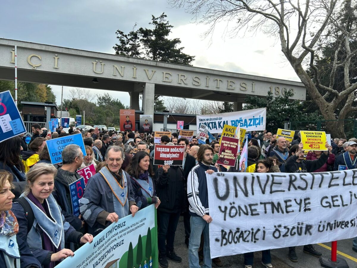 “Üniversitenin Senato ve Üniversite Yönetim Kurulu gibi üst yönetim yapılarına hukuk dışı yollarla el konuldu. Kurumun demokratik, katılımcı ve şeffaf yönetim yapısı yerle bir edildi. Öğrencilerimiz hapse atıldı, şiddete maruz bırakıldı, mesnetsiz disiplin soruşturmalarıyla yıpratıldı ve kimliklerinden dolayı hedef gösterildi. Bölümlerin verdiği yüksek lisans kabullerinin iptal edilmesi gibi yollarla öğrencilerin akademik hayatlarını sürdürmeleri engellendi. Birçok idari personelimiz işten çıkarıldı, sürgün edildi ya da emekliliğe zorlandı; yerlerine çoğu deneyimsiz ve bir kısmı da usulsüz yöntemlerle işe alınan 650’den fazla yeni personel atandı. Sayıları 60’ı aşan öğretim üyemiz görevlerinden uzaklaştırıldı veya kurumdan ayrılmak zorunda bırakıldı.”
