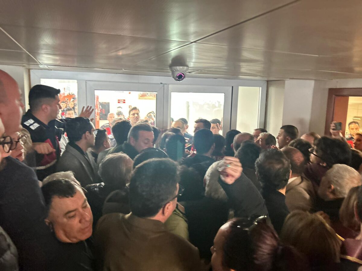 Sezgin Tanrıkulu, Mustafa Sarıgül, Ahmet Özer, Gökçe Gökçen ve çok sayıda CHP'li salon önünde bulunuyor.