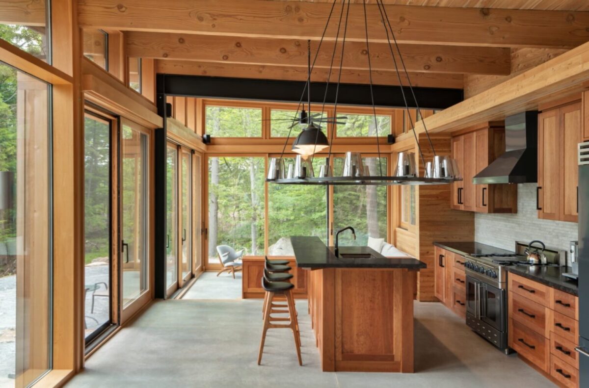 Toronto merkezli Trevor McIvor Architect tarafından tasarlanan 2 bin 500 metrekarelik ahşap yapı, 2020 yılında özel bir müşteri için tamamlandı. Charred Douglas fir kaplamasıyla dikkat çeken kulübe, hem modern hem de doğayla bütünleşik bir tasarıma sahip.